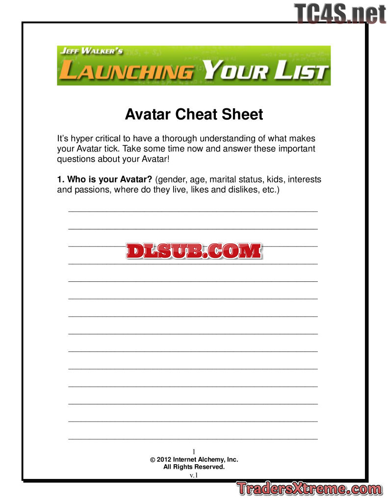 05 02 Lesson 5 How To Define Your Avatar Cheatsheet - JPG Image File