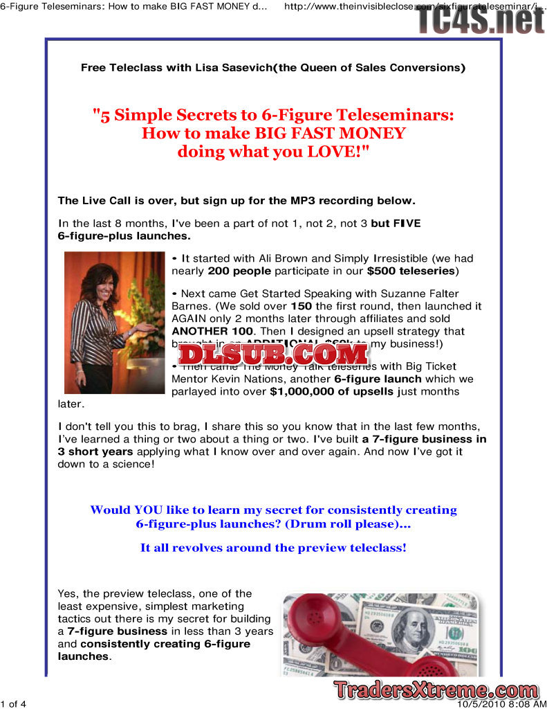 Lisa Sasevich 6 Figure Teleseminar Secrets