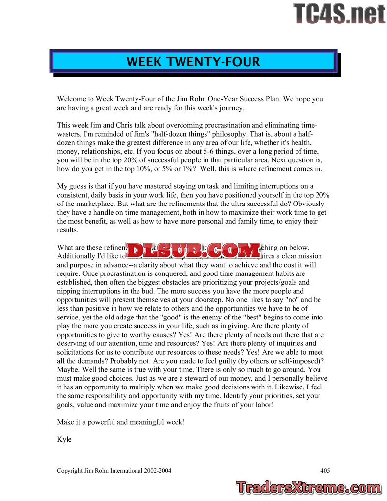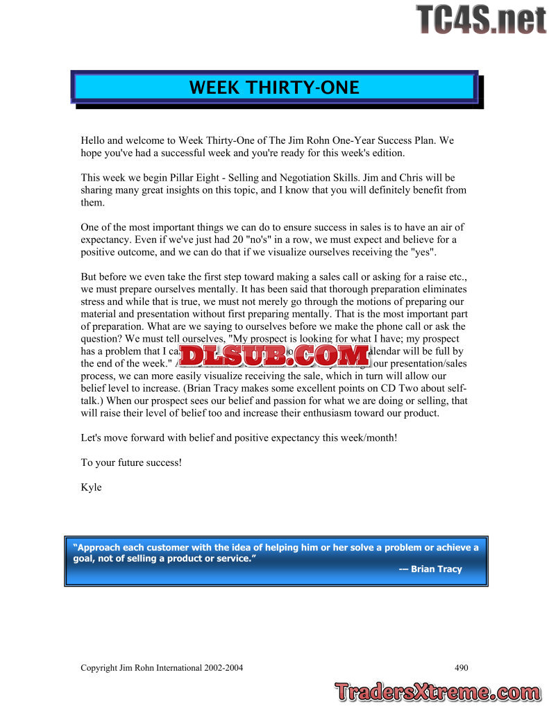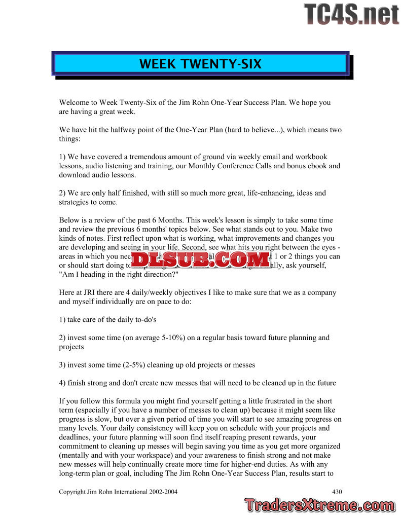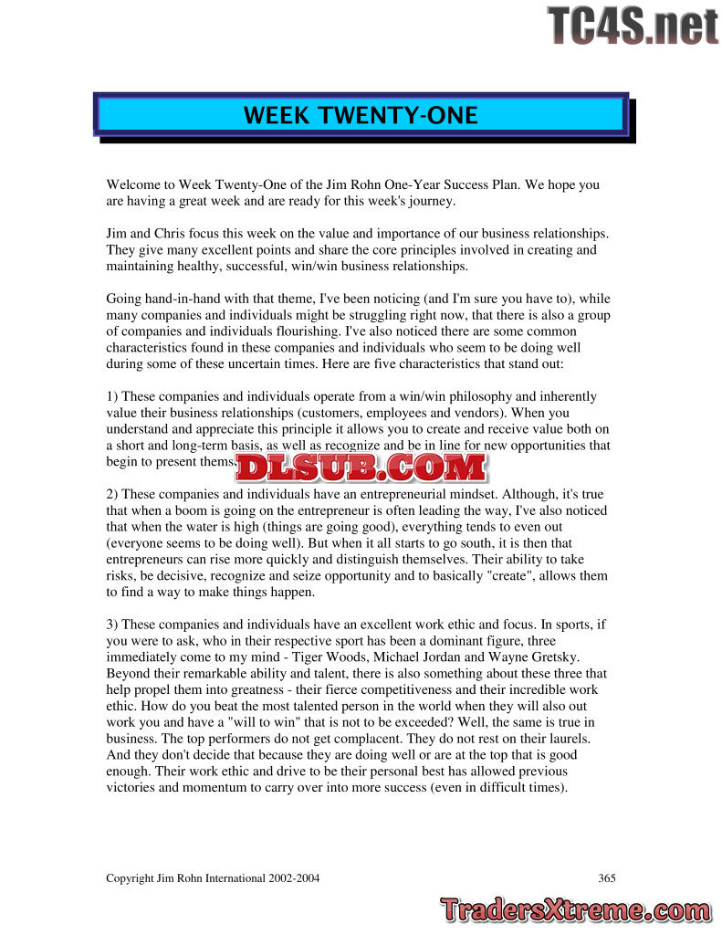 Jim Rohn One Year Success Plan