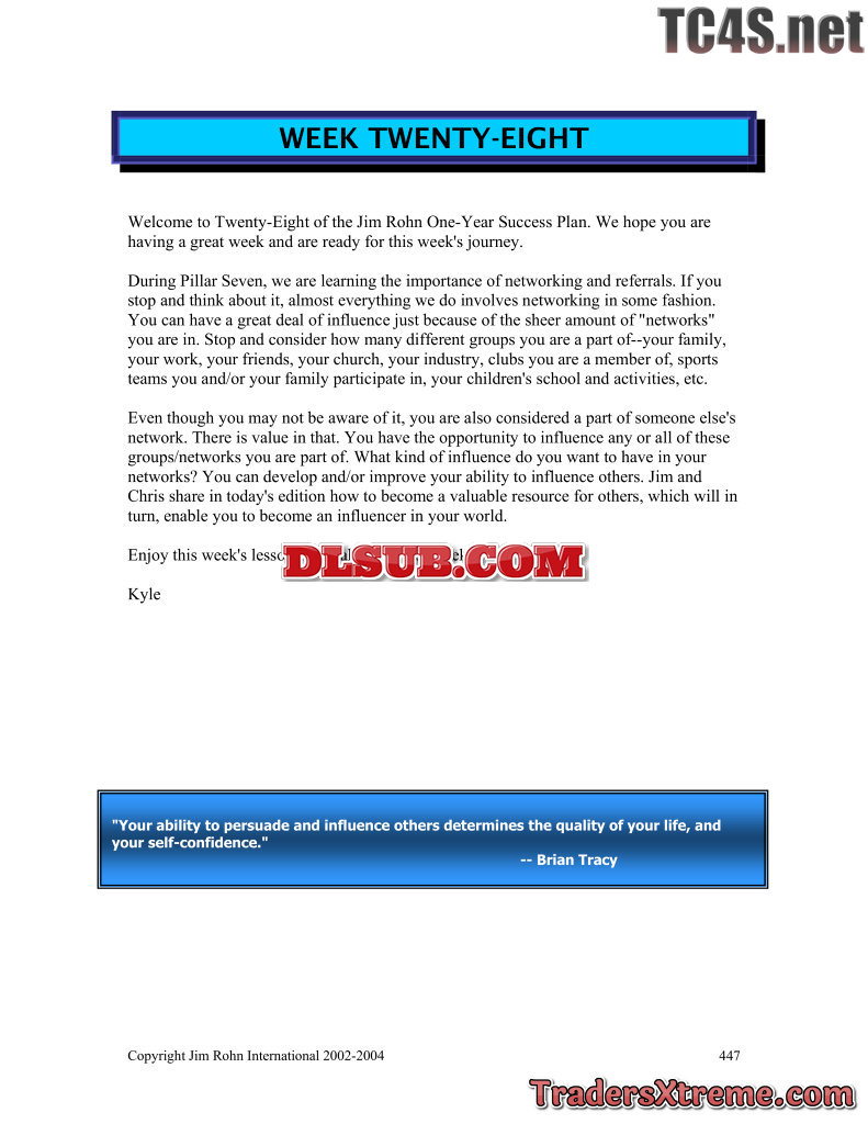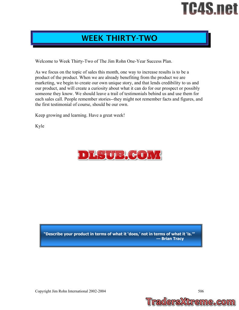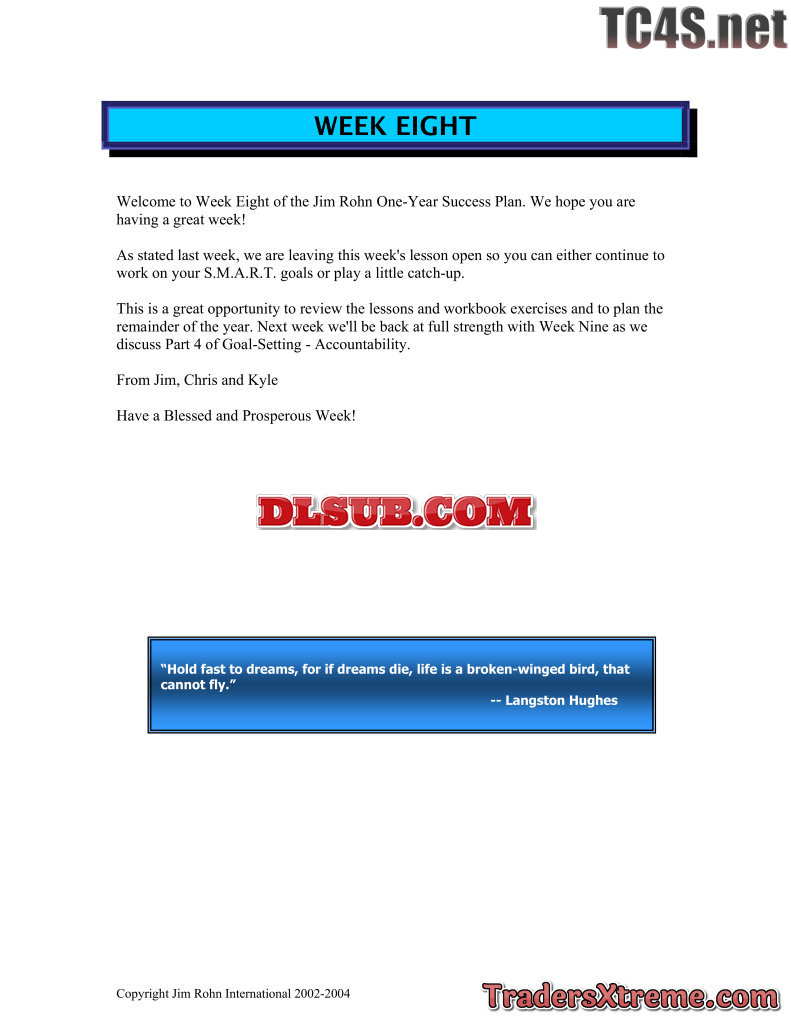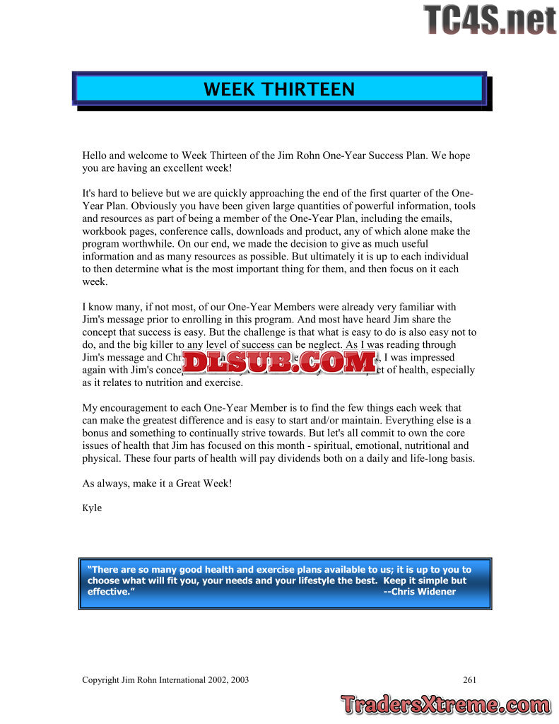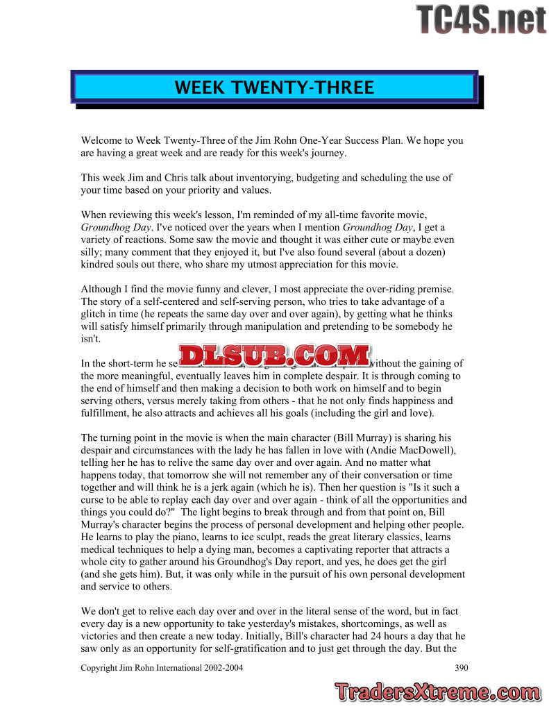 Jim Rohn One Year Success Plan