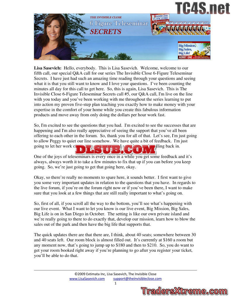 Lisa Sasevich 6 Figure Teleseminar Secrets