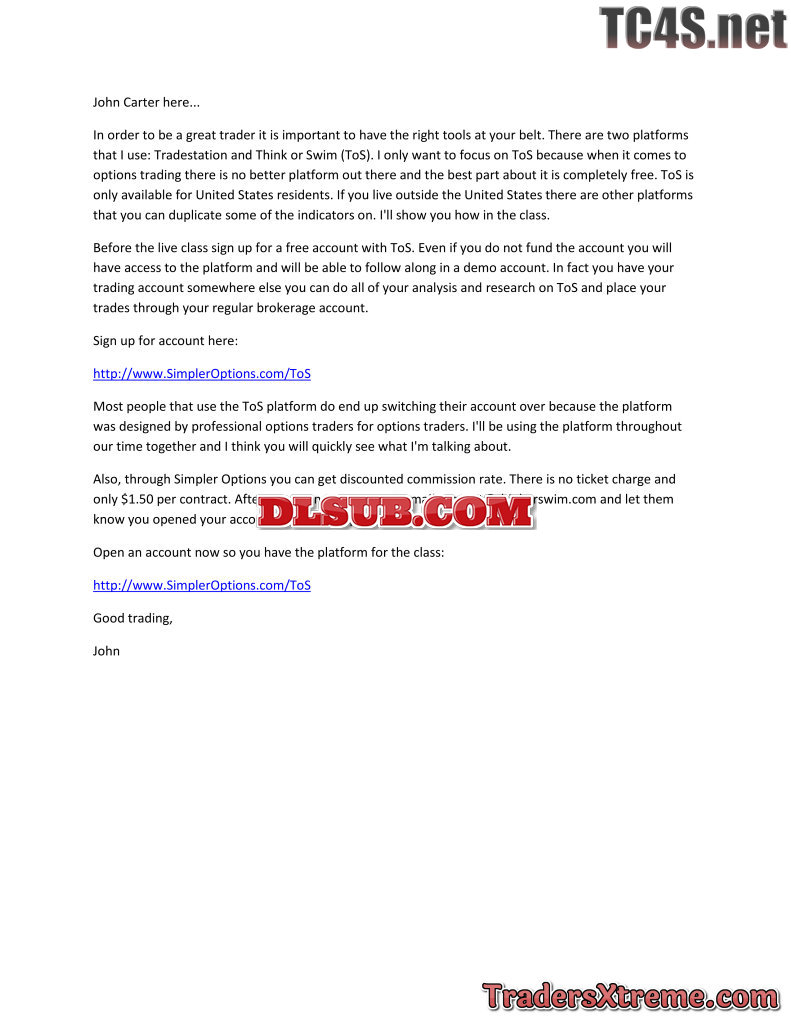 John Carter Simpleroptions Insiders Guide To Trading Weekly Options Strategies Class Usd 749 Usd 98