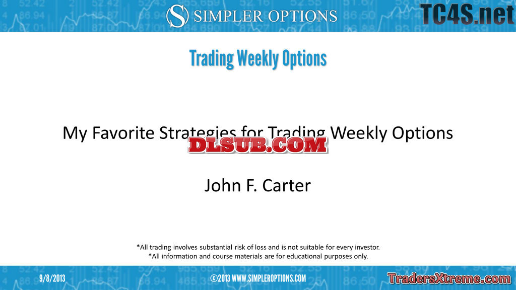John Carter Simpleroptions Insiders Guide To Trading Weekly Options Strategies Class Usd 749