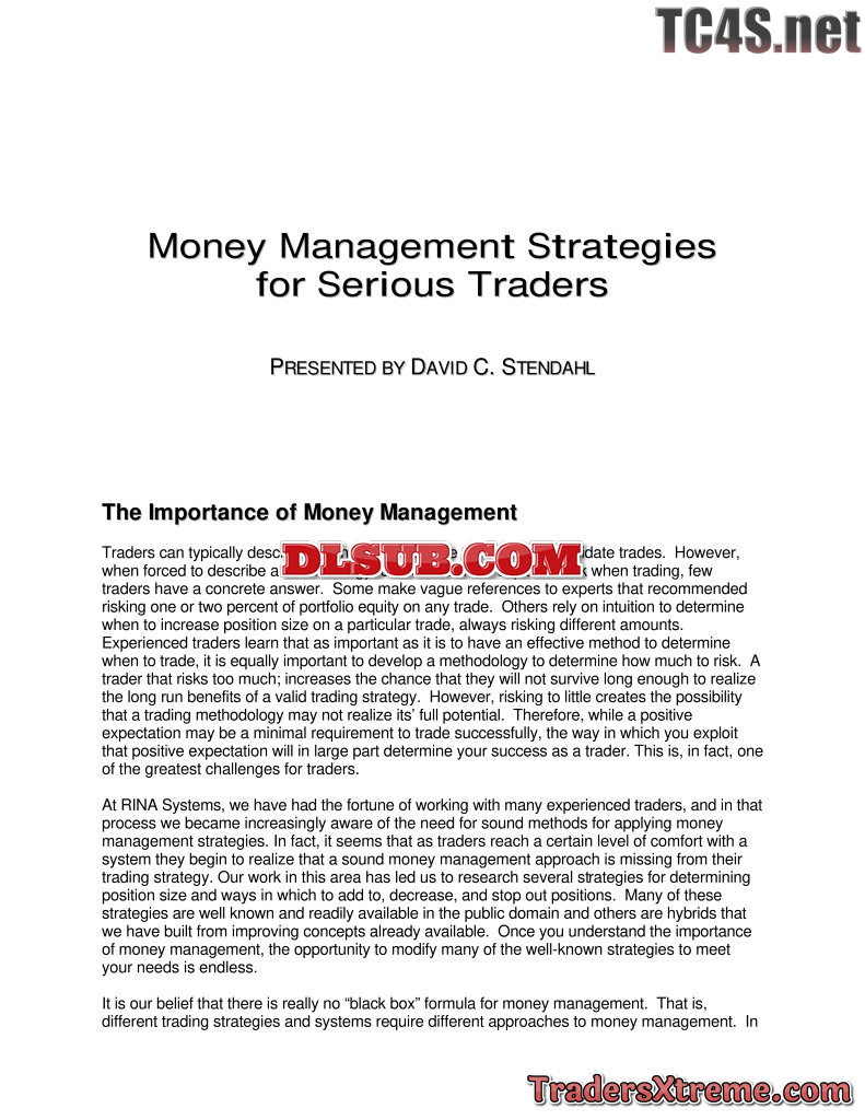 David Stendahl And Rina Systems Money Management Strategies For Serious Traders - JPG Image File