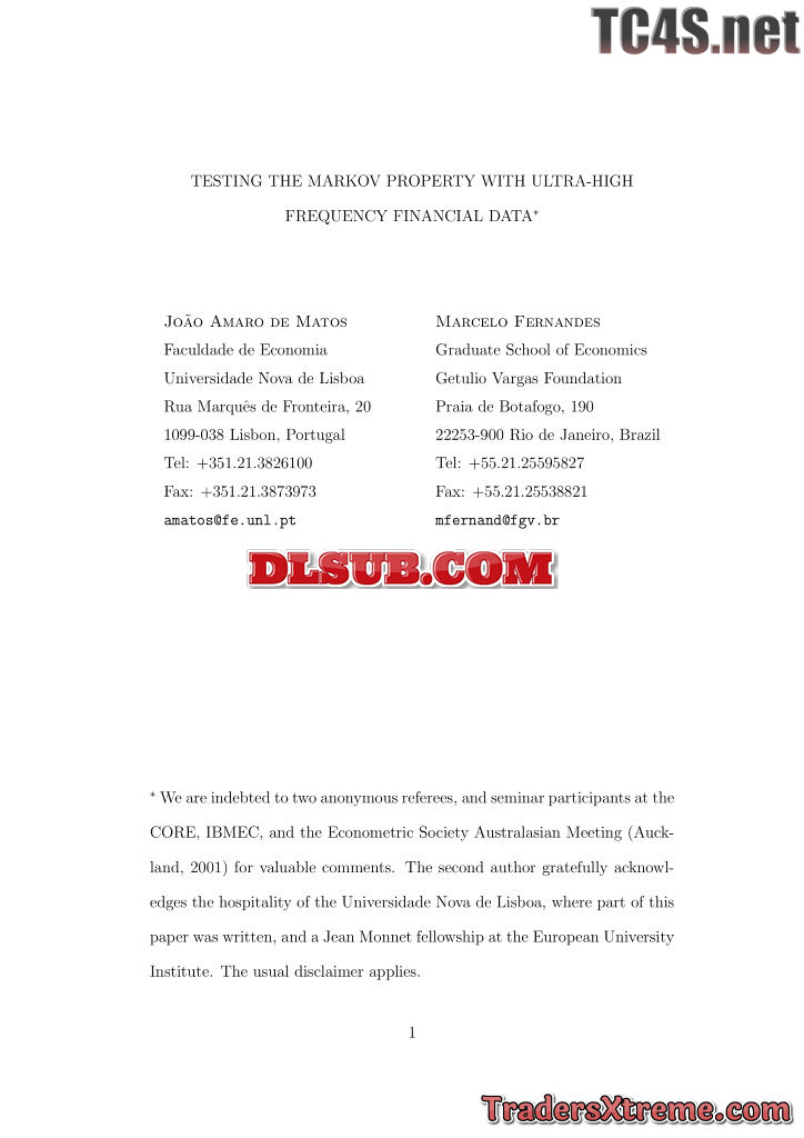 De Matos And Fernandes Testing The Markov Property With Ultra High Frequency Financial Data - JPG Image File