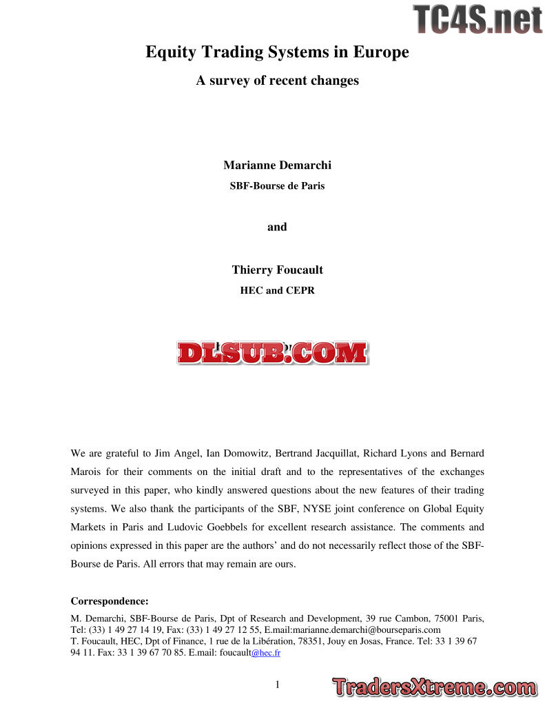 Demarchi And Foucault Equity Trading Systems In Europe A Survey Of Recent Changes - JPG Image File