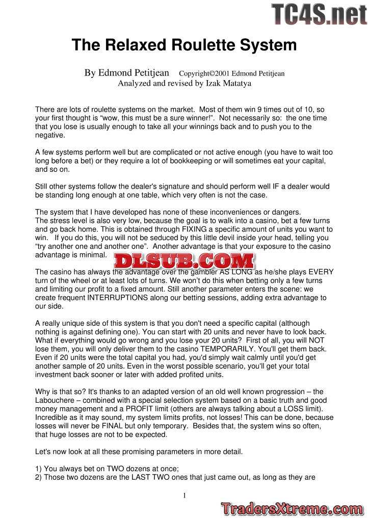 Edmond Petitjean The Relaxed Roulette System Letstalkwinning