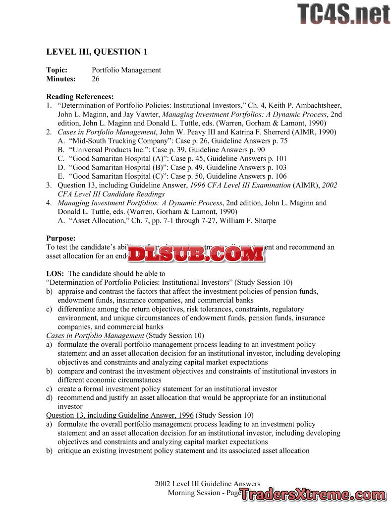 2002 Cfa Level 3 Examination Morning Session Essay