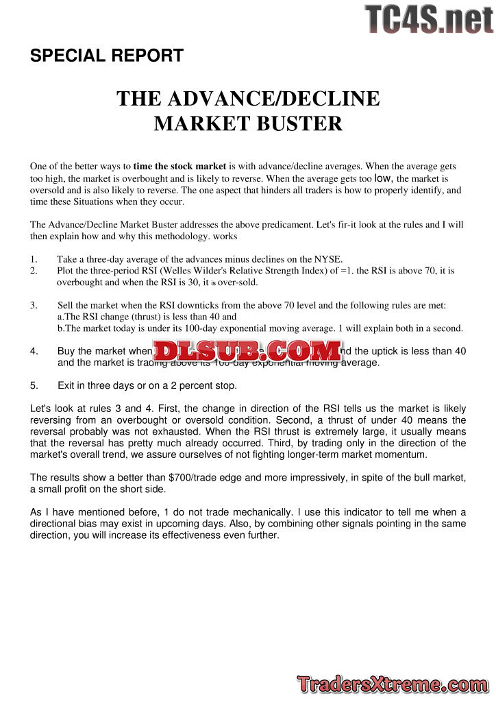 Linda Raschke Special Report The Advance Decline Market Buster - JPG Image File