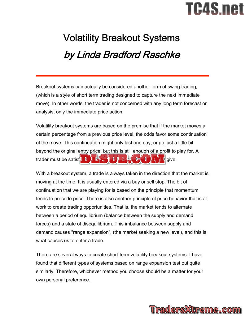 Linda Raschke Volatility Breakout Systems - JPG Image File