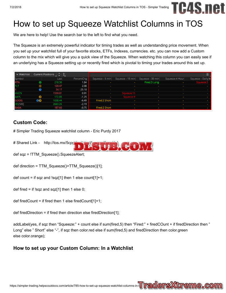 How To Set Up Squeeze Watchlist Columns In Tos Simpler Trading - JPG Image File